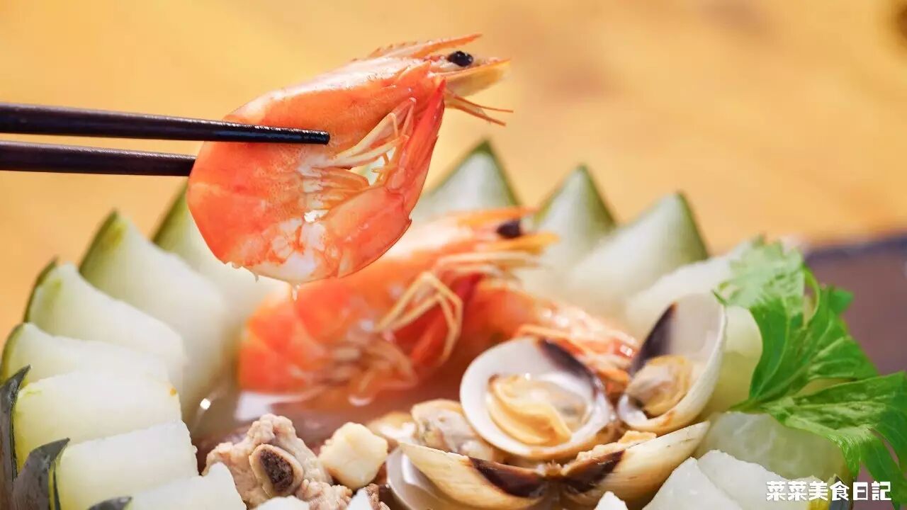 通常冬瓜盅都会选择虾米,我直接用了鲜虾,色泽更好看,口感也更好。
