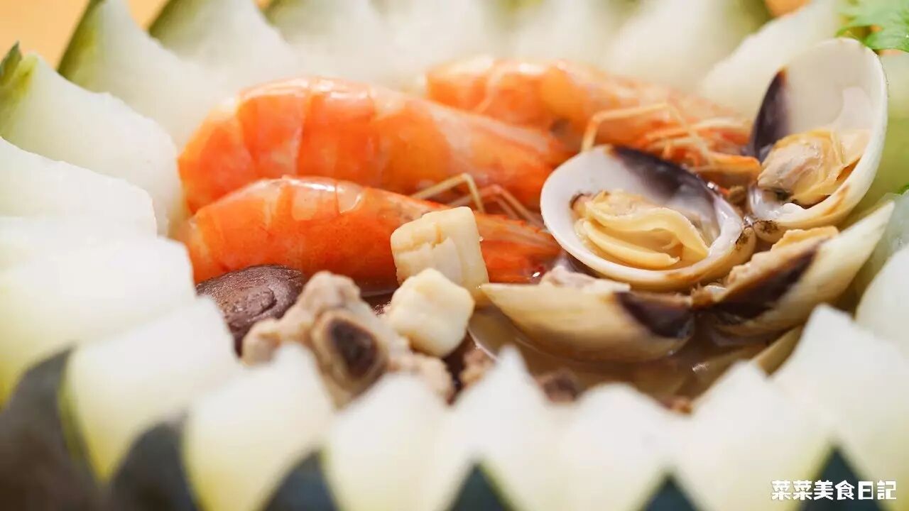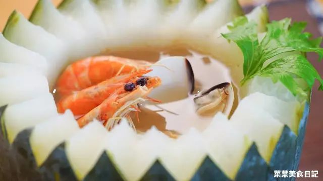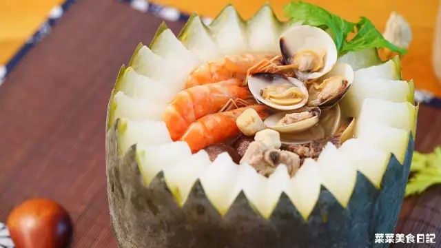冬瓜盅是传统粤菜,广东人家一般喜宴或是请客也会有一道冬瓜盅镇场。