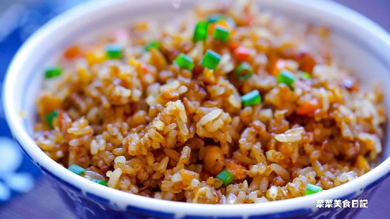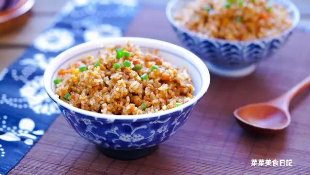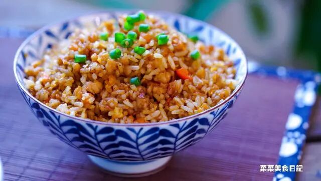 每一粒米都沾上蛋黄和调味,萝卜和肉末点缀其中,特别有嚼头。