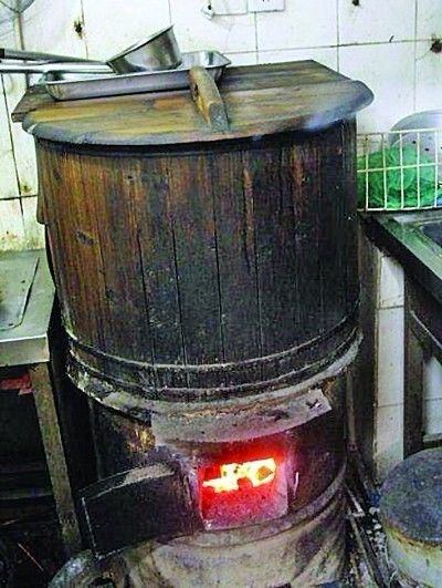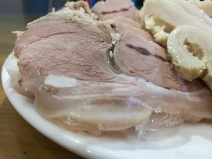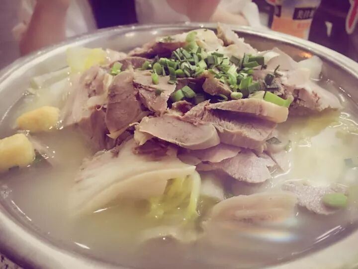 最下面放羊肉,上面是羊肚,而最上面则是鲜嫩的羊肝。急火烧沸后,便可将羊肝捞出,泡在淡盐水中,这样做出来的肝才不会变色变味。