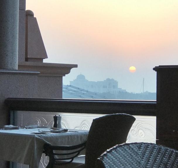 阿联酋的天气其实不是很好,所以室外餐桌基本没什么愿意去坐,风景看起来也并不好。