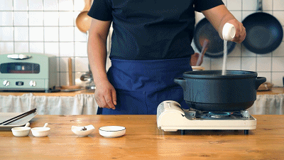 5.酸菜倒入放了五花肉的砂锅中,下盐、白胡椒粉、葱结,大火煮开,中火煮半小时