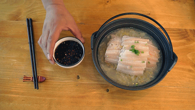 7.捞出白肉,切成薄片,平铺在酸菜上