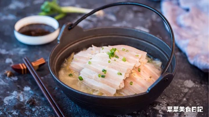 做这道菜,最为考究的是刀工,要切的极薄,白肉才会久吃不腻。