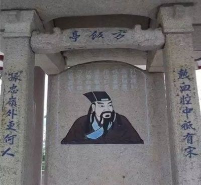 二百年后,明正德十年(1515),敝县邑生吴子昌提请广东提学在五坡岭上建立表忠祠,祭祀文天祥;惠州守备陈祥又建“方饭亭”于祠后;惠州知府甘公亮复从庐陵取来文天祥画像,勒像于石,并于画像碑题刻文天祥《衣带铭》,立于亭内;又于亭柱铭刻一联:“热血腔中只有宋,孤忠岭外更何人”。