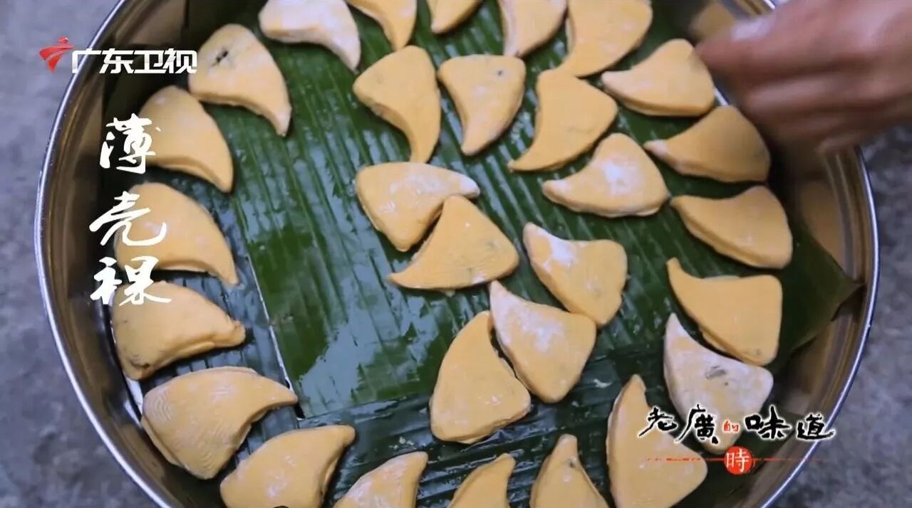 把南瓜打碎,加入面粉捏成面团,把用薄壳米调好的馅料裹进去,大火蒸上十分钟,晶莹剔透的薄壳粿就出炉了。