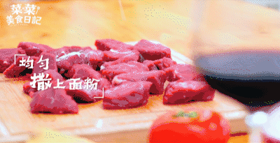 注意是低筋面粉而不是淀粉,一是锁住牛肉水分二是方便牛肉上色