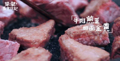 3.起锅热油,中大火煎牛肉至四面金黄后出锅备用