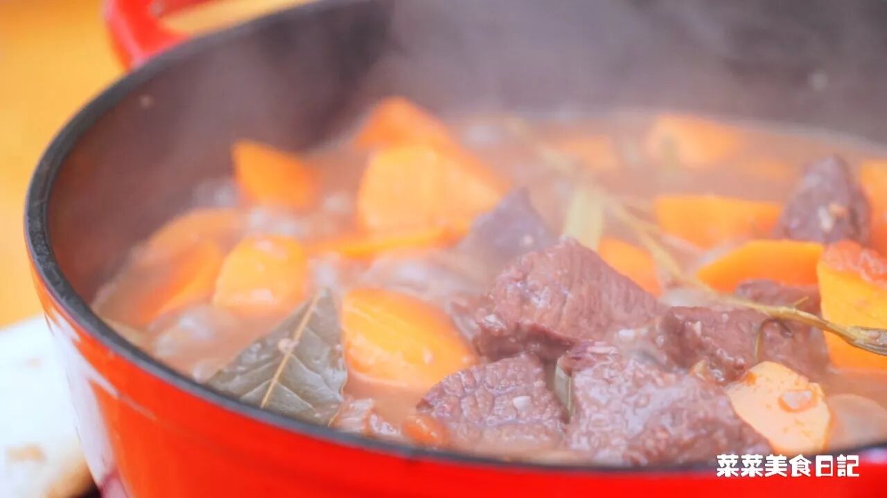 做法也是懒人式,只消把食材处理过,一股脑放进珐琅锅慢慢炖煮。时间会赋予你软烂的牛肉、香糯入味的蔬菜以及浓稠诱人的汤汁