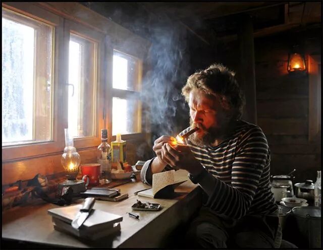 然而即使决绝如泰松,也不可能做到完全不依赖于人类社会。他天天读鲁滨逊,可他也像鲁滨逊从沉船上取来不少文明的遗物一样,从离隐居地最近的伊尔库茨克市拉来了一车物资,包括十八瓶辣椒酱和无数伏特加、雪茄以及一箱待读的书——当他选择在他的书箱带上以下几本书时,我窥见了他对那半年孤独自我的定位:克尔凯格尔《论绝望》、米歇尔·图尼埃《星期五》、笛福《鲁滨逊漂流记》、汤姆·尼尔《南海鲁滨逊》、还有一堆尼采。