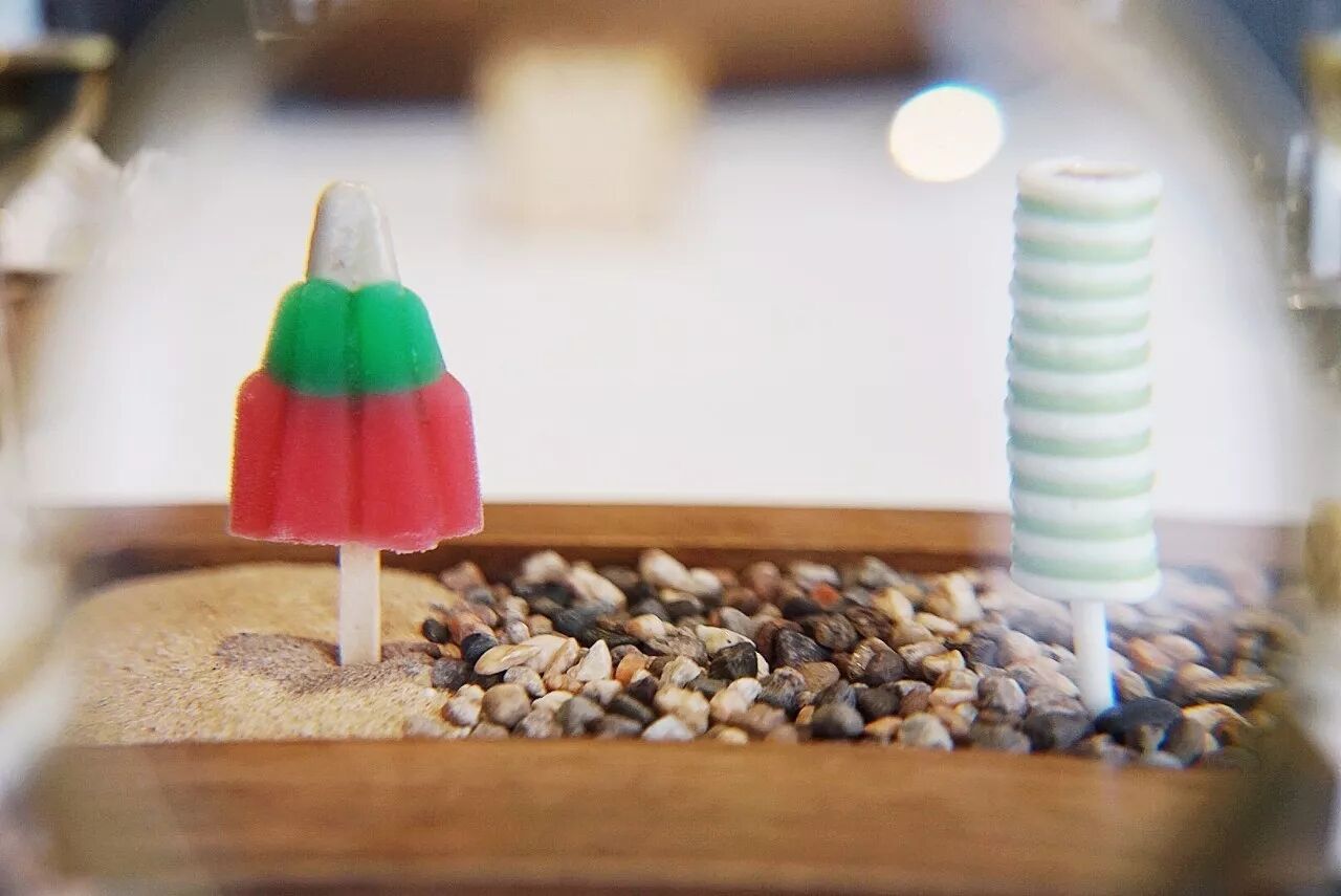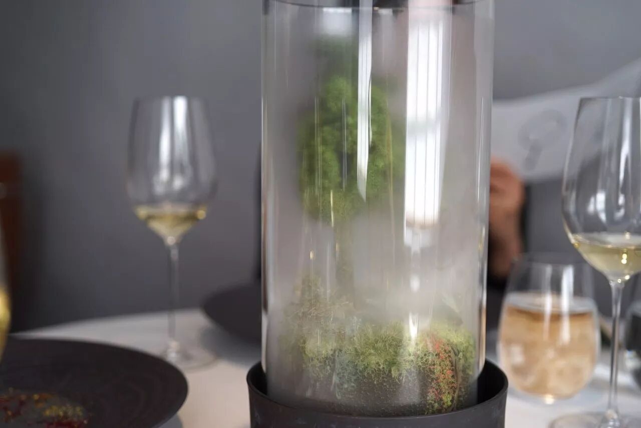 器皿也是定做的,下面是真的沙子,玻璃上的一切,都可以吃。当时吃到嘴里觉得味道非常复杂,令人难忘,现在还能明确想起来,印象深刻