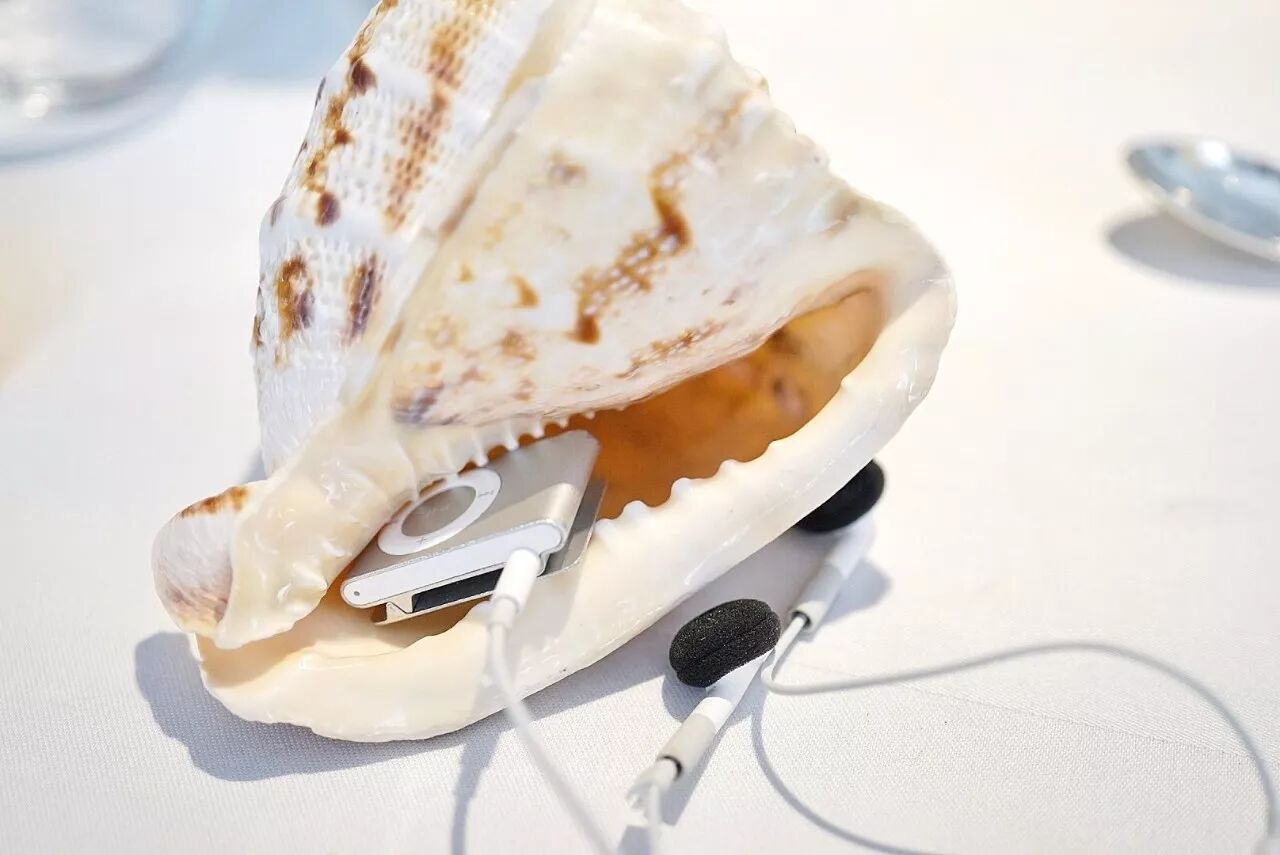 上菜的时候会给你一个大海螺,全程要带着耳机听着海浪的声音吃,集味觉、听觉、视觉于一体。
