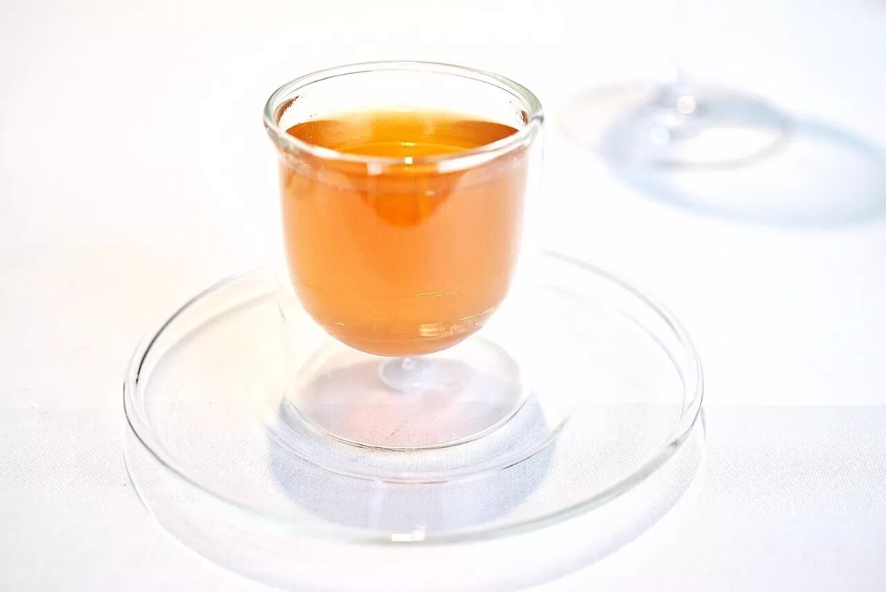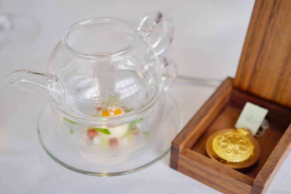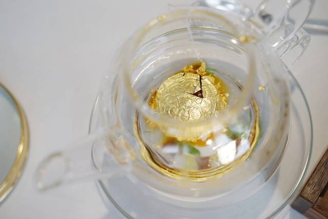 接着会端上一杯茶。一半冷,一半热,一口喝下去先冷后热,能够感受温度奇妙的变化。要赶快喝掉!