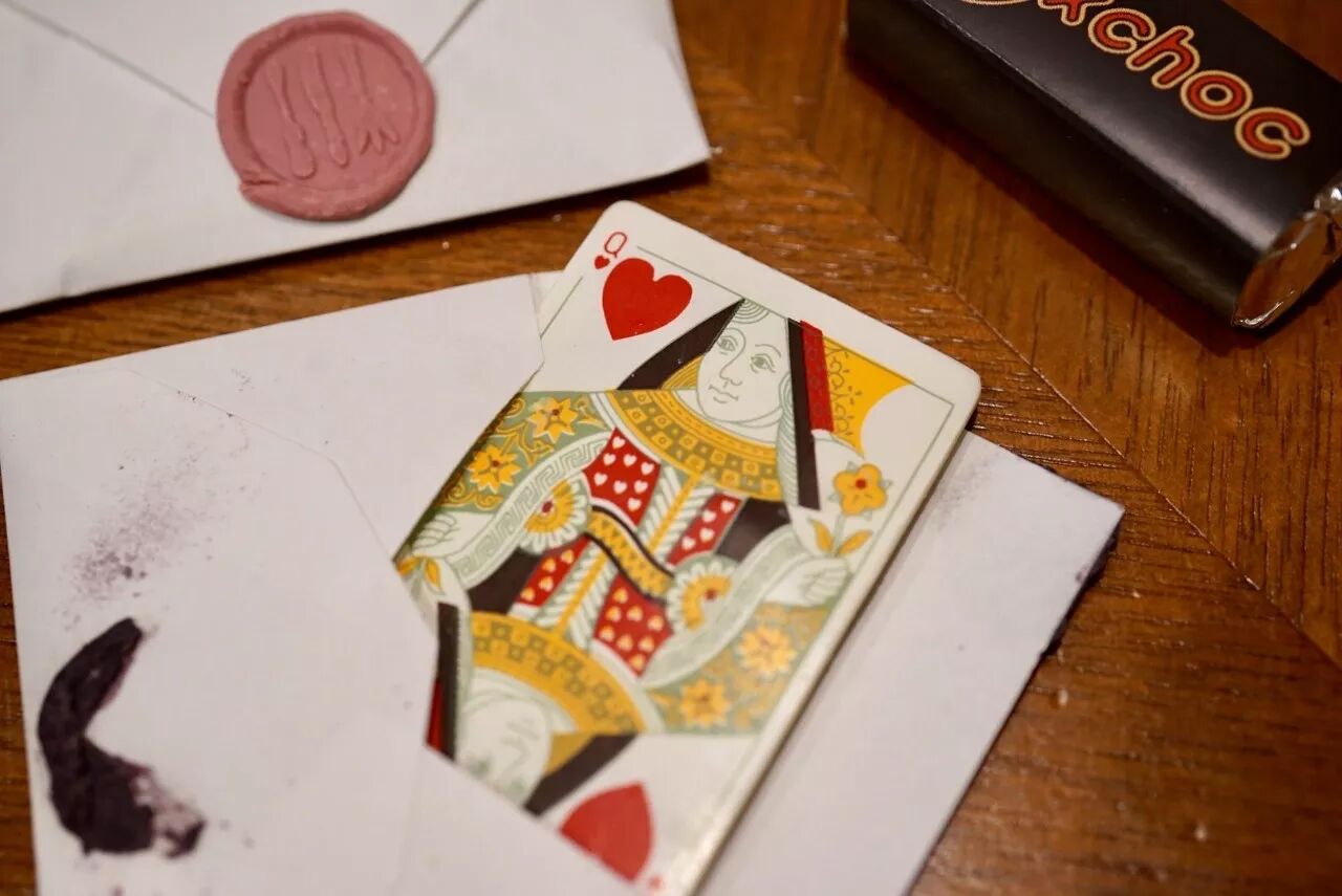 每个人都会随机得到一份糖果纪念品带回家,巧克力做的扑克牌: