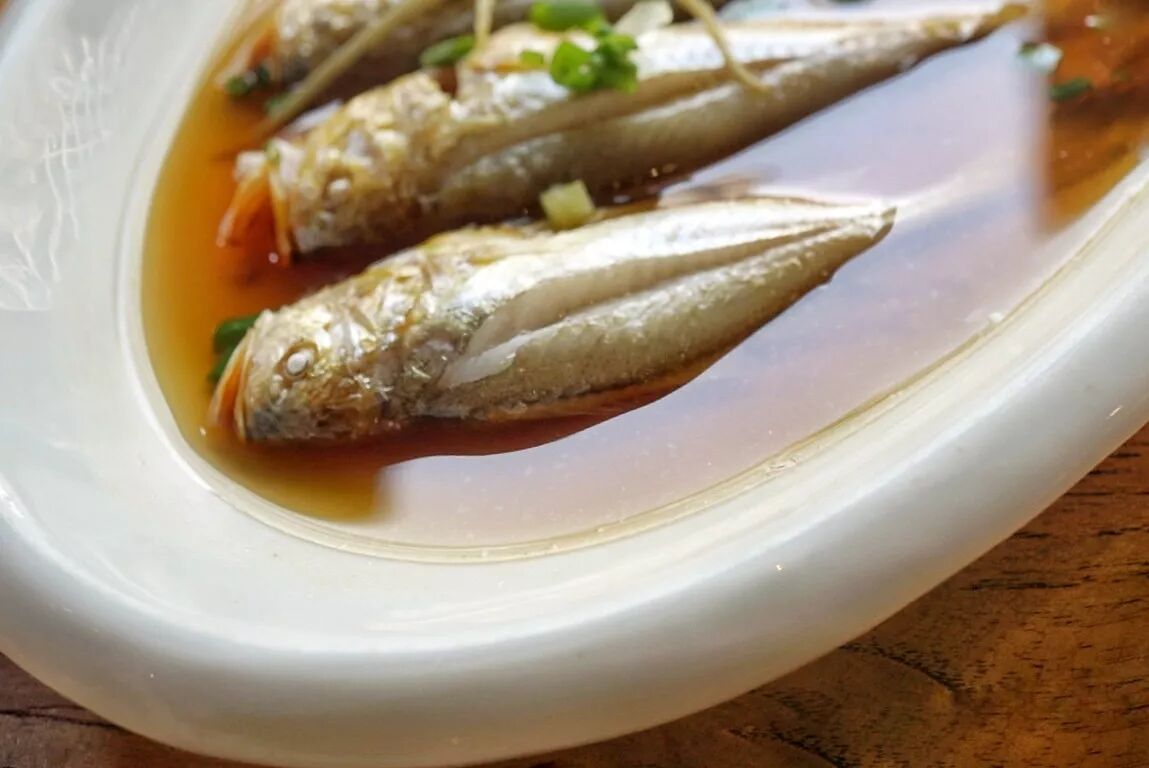要特别和老板商量,用母子酱油来蒸。母子酱油是绍兴人的名产,经过两次发酵,入口极鲜: 母子酱油不一定有,要看情况。