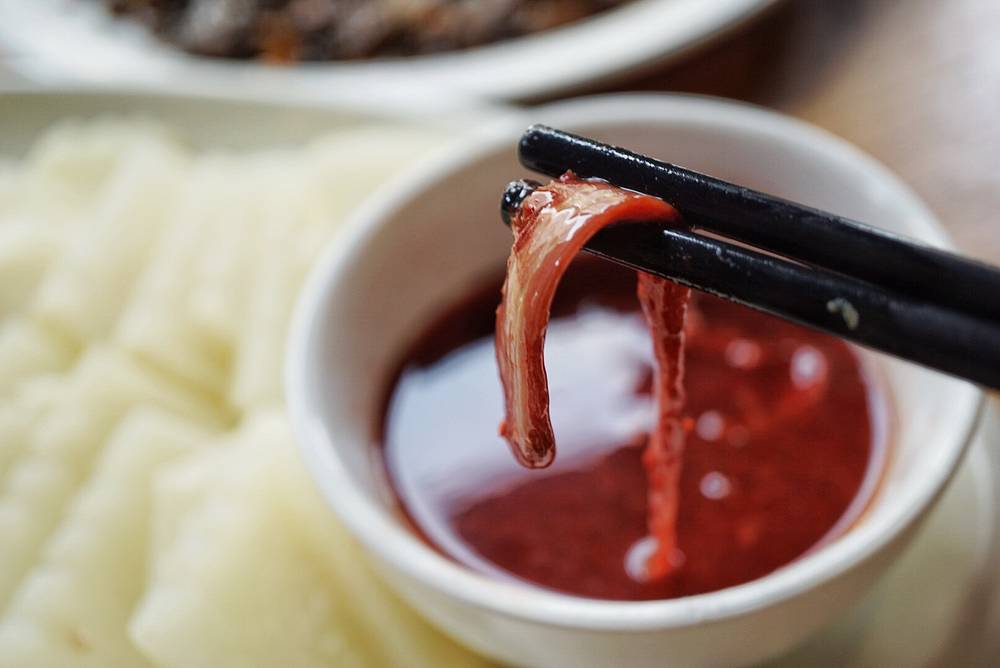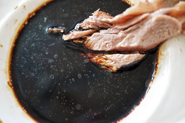 蘸本地土酱油,鹅肉的油花立即浮散开来: 酱油谈不上多好,是小时候的味道。