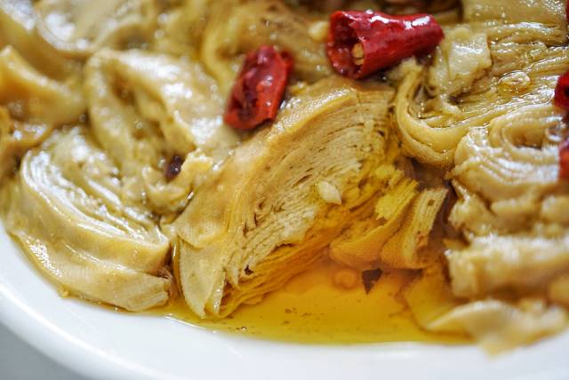 但桌上三名杭州人都表示说,喜欢霉千张那种臭里带着紧致的鲜味,这盘有点淡口。(原来杭州人对发酵食物也接受重口味啊,温州研究员表示惊奇。)