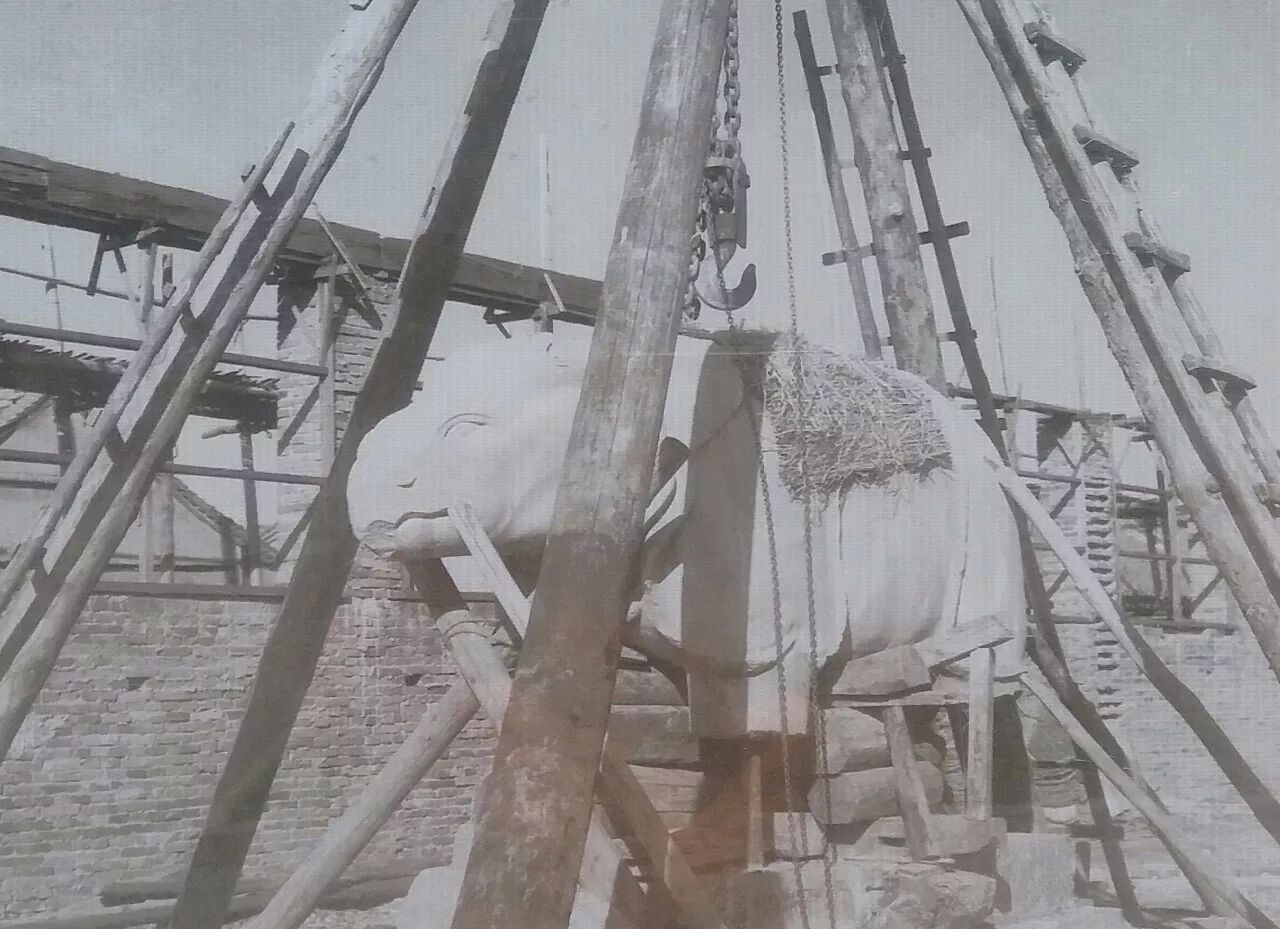 这是几张碑林的旧影。其中1963年新建石刻馆的时候,把一个十吨重的李渊墓前的大犀牛也挪到了陈列室里。