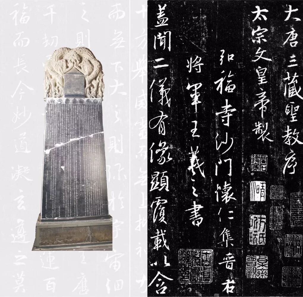 序作好了以后,弘福寺的沙门怀仁,就是玄奘的弟子,从内府收藏的王羲之书法中一个字一个字挑出来,把这一千多字的碑文集成。