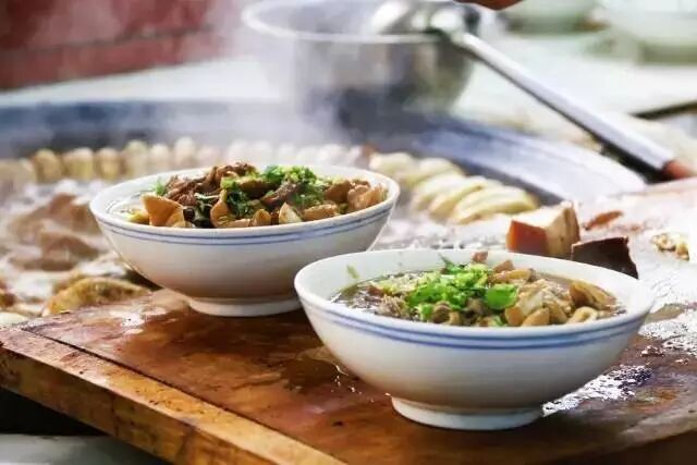 第一下先捡一块小肠,小肠不能弄得太干净,里面一定要留一些肠油,这样吃起来才饱满丰腴,滋味更加解馋;第二口必然是肺头,许多人吃小肠却不吃肺头,原因是里面布满孔洞的气管,不要纠结于这是气管还是支气管,殊不知这才是妙处,吃起来有轻微的咯吱声,每次我都会叮嘱伙计,多给我来点肺头;第三口则直奔火烧,火烧有点硬,此时已经吸满汤汁,这汤汁虽然有点咸,细品也无非是酱油、酱豆腐汤、各种中药,味道重,不清爽,一口之后还是能迅速叫人找到北。