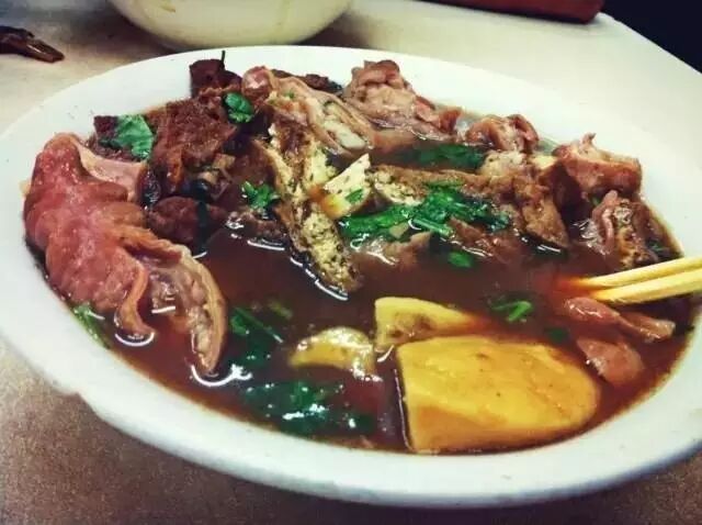 有不少卤煮店曾经火爆一时,渐渐衰落。以前我到东四环,必然会去农民日报社北侧的晴源天地卤煮店,卤煮肉饼茄丁面,这是这里的三套马车。后来我在这里自创了新吃法,两个菜底,不要火烧,一份茄丁面,不要拌,把卤煮菜底拌面条,茄子卤当素菜。这算是乱点鸳鸯谱的吃法,也别有一番韵味。后来我把这个童趣般的新发明告诉了不少人,如果有人在这里这么点菜,十有八九,得我真传。可是后来这家店不在了,搬到了更远的管庄,我就没有去过,不知道现在如何。