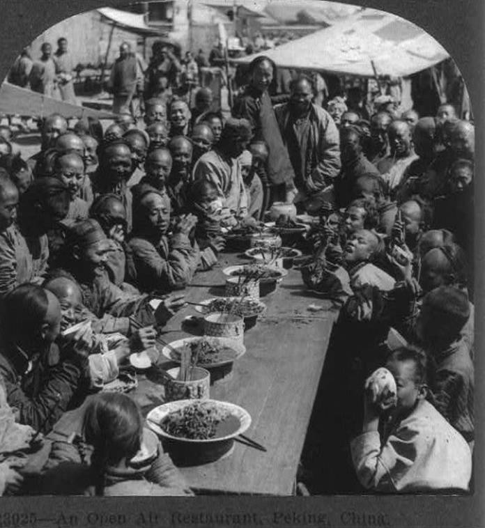 露天餐馆里,食客们正在吃饭。照片拍摄于1924年前后。