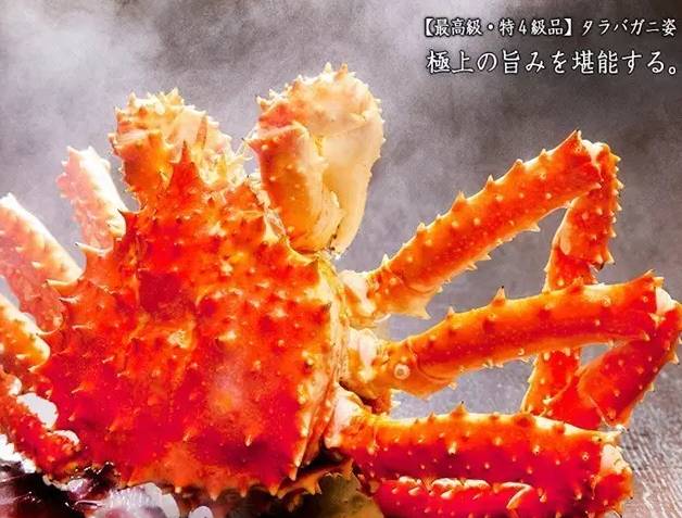 北海道帝王蟹,北海道的鳕场蟹,是重要的商业捕捞蟹种。自然分布于北太平洋的冷水海域,从日本海、鄂霍次克海至白令海一带。其肉质鲜美、富有弹性,是所有到北海道的游客都千万不可错过的地道美食。