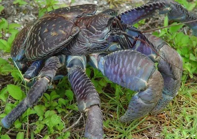 椰子蟹又称八卦蟹,这种蟹广泛分布于太平洋和印度洋的热带地区如印度尼西亚的拉贾安帕群岛。其体重最高可达6公斤,它们是一种寄居蟹,能用钳子弄破椰子的外壳,以吃其中的椰子果肉,并因以为其名。椰子蟹生活于海边附近的热带树林中,善于爬树。椰子肉是椰子蟹的最佳铒料,它双螯非常有力,能轻而易举地爬上高树剪下椰子,并凿开壳而吃椰子肉。