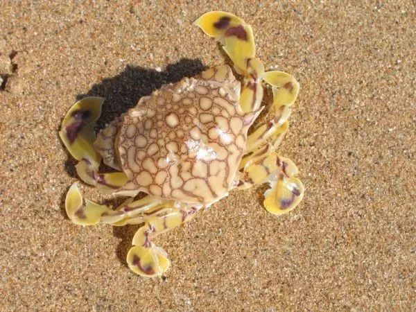 紫色圆点蟹身形像一个发酵好的面包。产地为金门海峡,相通美国加利福尼亚州圣弗朗西斯科湾和太平洋。