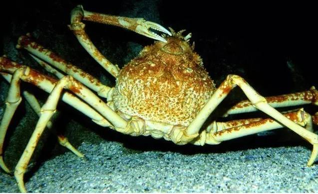 它是生活在日本南部海岸的奇特生物。它有比任何动物都长的腿,最大跨度达3.8米(12英尺)的爪子和重达19公斤(42磅)的体重。这种蟹叫“甘氏巨螯蟹”,是一种蜘蛛蟹,也是已知世界上现存体型最大的甲壳动物,由于食腐尸而得了一个“Dead Man Crab”的英文俗名,导致中国将其翻译为食尸蟹,最终被谣传为“杀人蟹”。