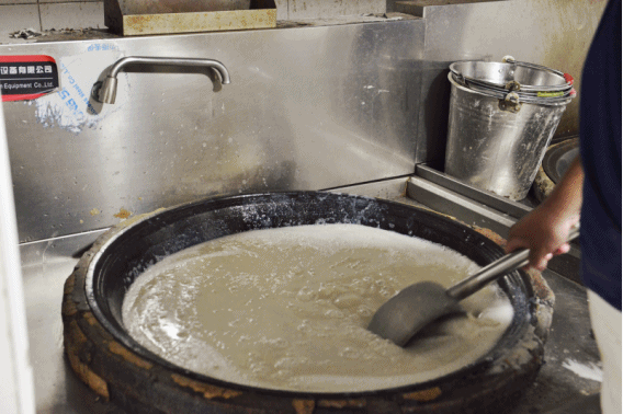 熬豆汁也有讲究,忌用铝锅铁锅等金属质地的灶具——发酵的豆汁会腐蚀金属造成固体絮凝沉降影响豆汁口感,且过量摄入铝离子会影响人体健康,所以讲究的豆汁店均用砂锅。不过砂锅毕竟口径小,难以支撑商业用途,所以现在有的店用的是不锈钢大锅,比不上砂锅醇厚,但味道和颜色均远胜于铁锅。