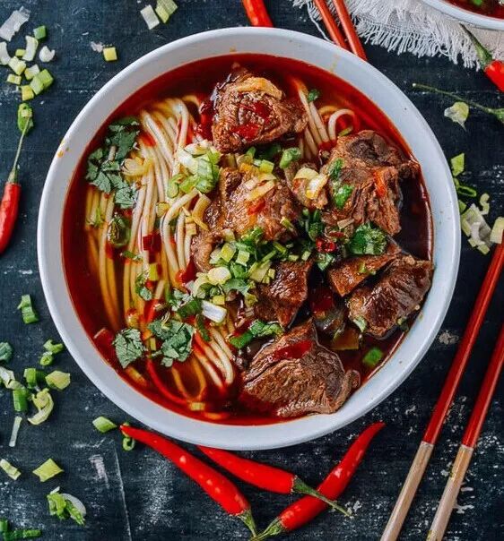 在台湾,牛肉面是一种很平民的美食,也是非常流行的美食,相传是曾经的国民党军队带去台湾的,后再经过后辈不断出新演化而来。台湾牛肉面的汤底醇香,熬得特别好,味道足,一点腥味也没有,而且牛肉香软,再加上清爽的香菜、葱花,简直是绝妙美味~