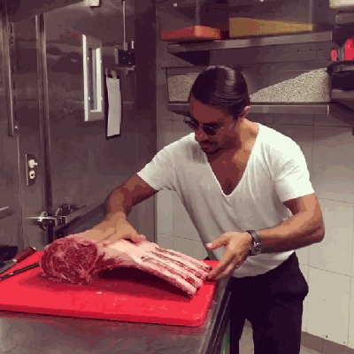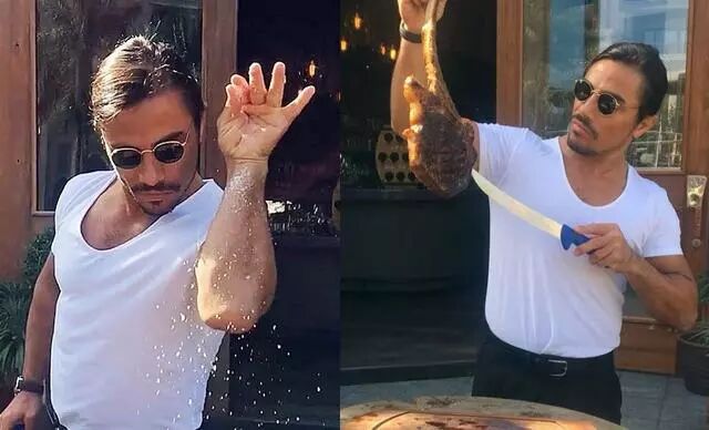 他的名字叫努斯雷特,今年34岁,在土耳其和迪拜以及阿布扎比都拥有一个叫做Nusr-et的牛排店。他的出名不仅因为厨艺高,牛肉做的好,更多因为他的撒盐动作和他的健身信仰。