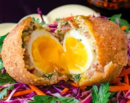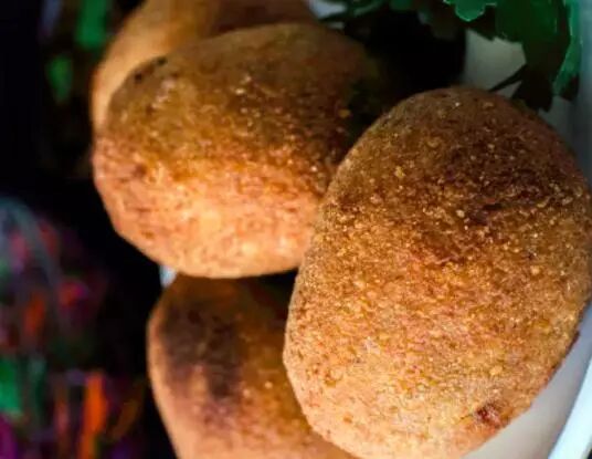 3. 在裹好的鸡蛋外面滚上一层面包屑。