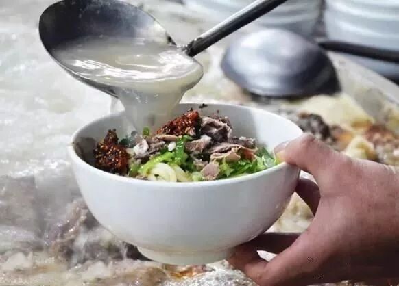 羊肉汤,制作原料主要有羊肉、辣椒油、花椒面、盐、葱花、香菜等,汤汁发白,肥而不腻,无膻味,在河南各地均有各具特色的地方名吃。在寒冷的冬天,要上10元或者20元羊肉或羊杂碎,冲入滚烫雪白的羊汤水,撒上碧绿的葱花或香菜,一碗热气腾腾,香气四溢的羊肉汤就做成了。一边吃肉喝汤,一边大口啃烧饼,那个舒服劲啊,只有喝过的人才懂得。