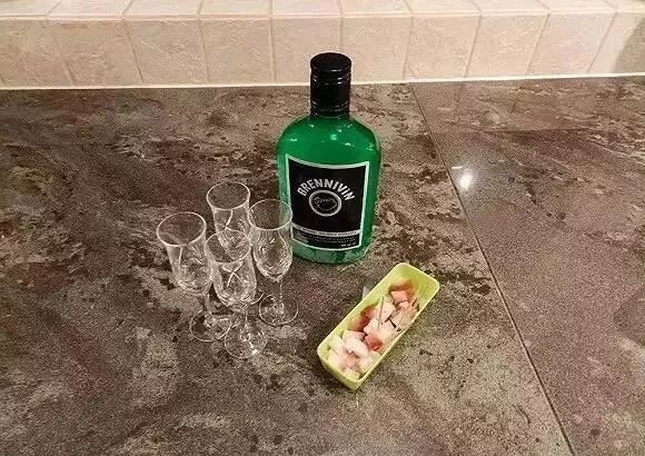 Brennivín的味道被当地人描述为“仿佛是泡在汽油里的裸麦面包”。。。此酒酒精度数极高,属于烈酒行列,在冰岛通常搭配臭鲨鱼肉一起食用,味道自行脑补吧!不得不说,冰岛人民太会玩了~