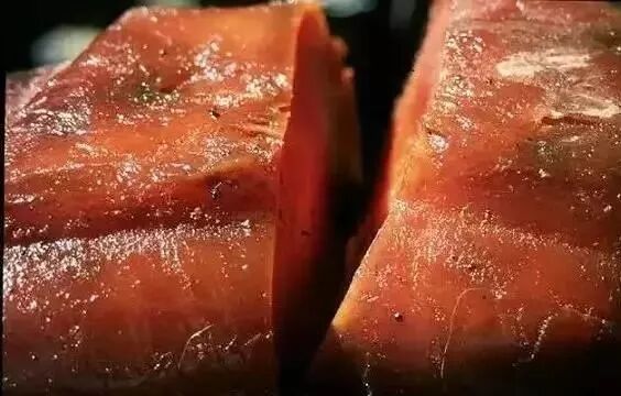 臭鲨鱼肉的制作工艺一点不简单!想要做出原汁原味的冰岛臭鲨鱼肉,必须要捕捞到格陵兰附近水域生长起来的鲨鱼,并且仅留取鲨鱼腹部的一小块很软的肉,在一年中太阳靠近北回归线的那四到五个月里晒干,再将晒好的鱼肉埋在沙中深度发酵,直至晒透彻后做出的味道才纯正呢~