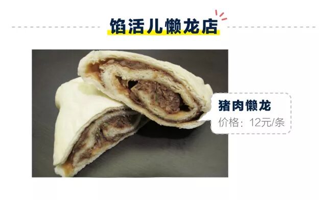 不同于便利店中肉少的可怜的懒龙,馅活儿的懒龙才是真正的懒龙!店里的懒龙肉馅分两种,牛肉馅(16元/条)和猪肉馅(12元/条),店员可以帮忙切开,每天能卖出120多条懒龙,皮跟肉馅分布均匀,而且最重要的是馅儿足!