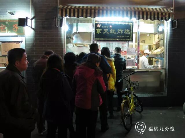 过虎坊桥,不去京天红有点说不过去了。北京3家京天红,只有这家最正宗,店里卖北京菜,门口卖炸糕,即便在入夜的寒冬依然有十多个人的小长队,很多人都是十几二十个买走,所以经常要等几锅(每人限购20个)。炸糕全身裹着热油,滴在铁盘上,拿到手里都是滚烫的,那种焦脆的手感就是让人宁愿烫嘴也要尝一口,豆馅很细,沙沙的,甜度刚刚好。