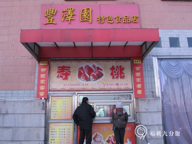 丰泽园的特色食品店是专门卖蒸食的,你可以通过上面广告牌的“寿桃”找到它。虽然京客隆超市里也卖丰泽园的馒头、豆包、山楂包,但是烤馒头和银丝卷只有在这里才能买得到。