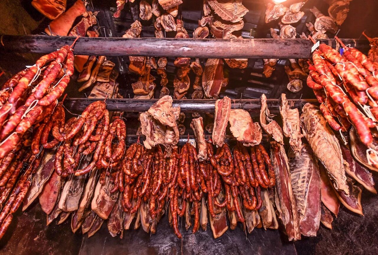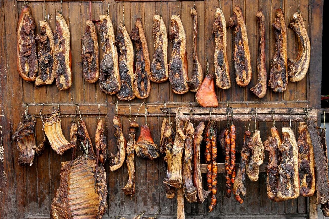 说到底,腊味是古代的吃货们为了极大限度的保存肉食生出来的智慧。肉不同于蔬菜水果,可以烘干保存,于是才有了风干、烟熏、晾晒成干的各种做法。