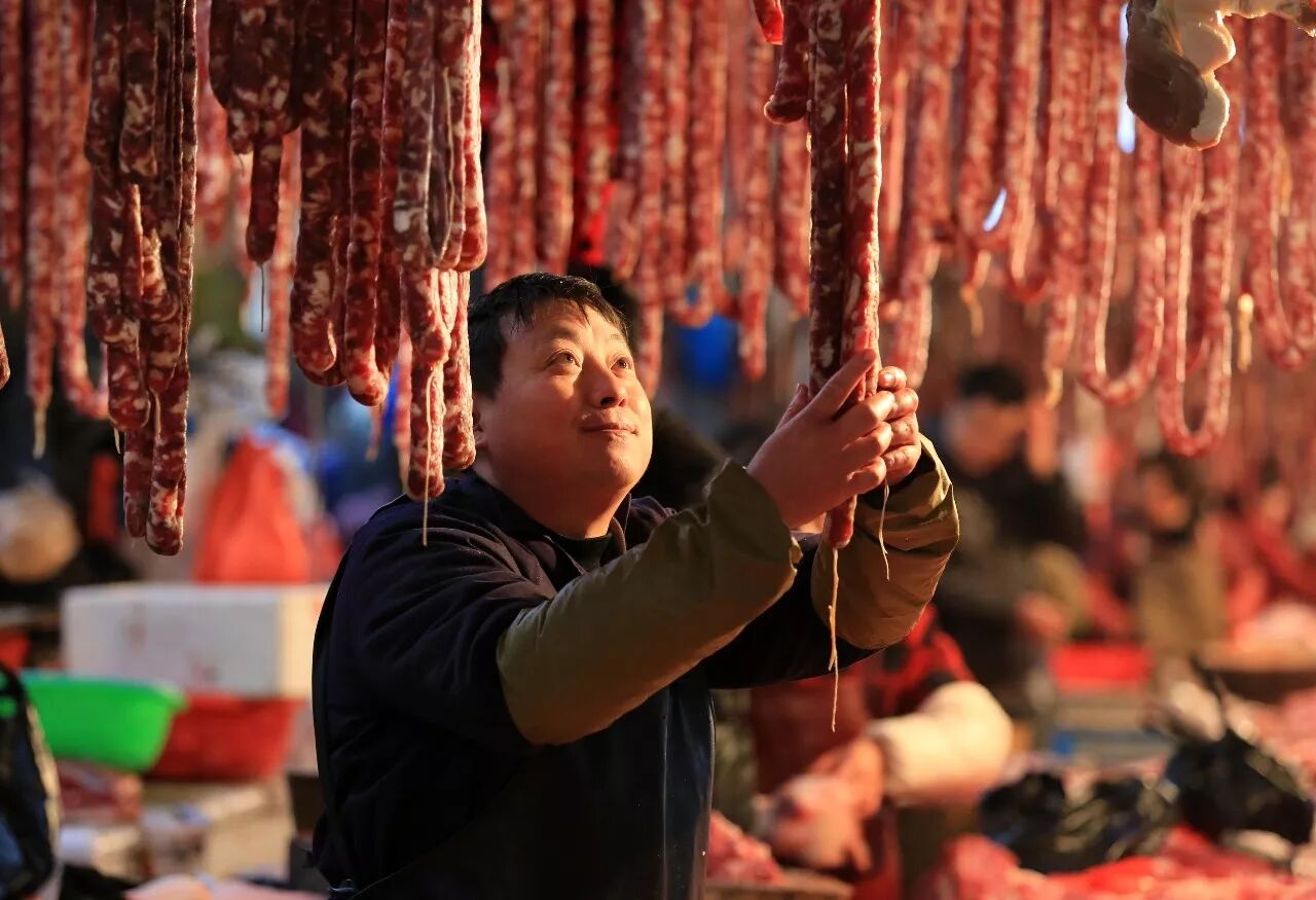 ▲“四川人家家户户都做腊肉。”这句话即便放到现在依旧说得过去,变的是,一到冬天工作繁忙的四川人可能会选择去超市买成品,或者去菜市场找人灌香肠、腌腊肉。图 / 视觉中国