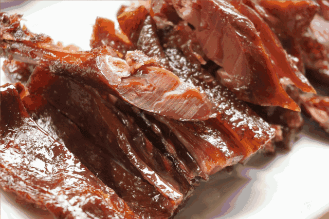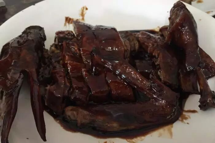 好的酱鸭入口,首先感受到的是一股沁人的鲜香气味。鸭皮在阳光的作用下早已变得很Q实,越是嚼之,越是觉得香味逼人。