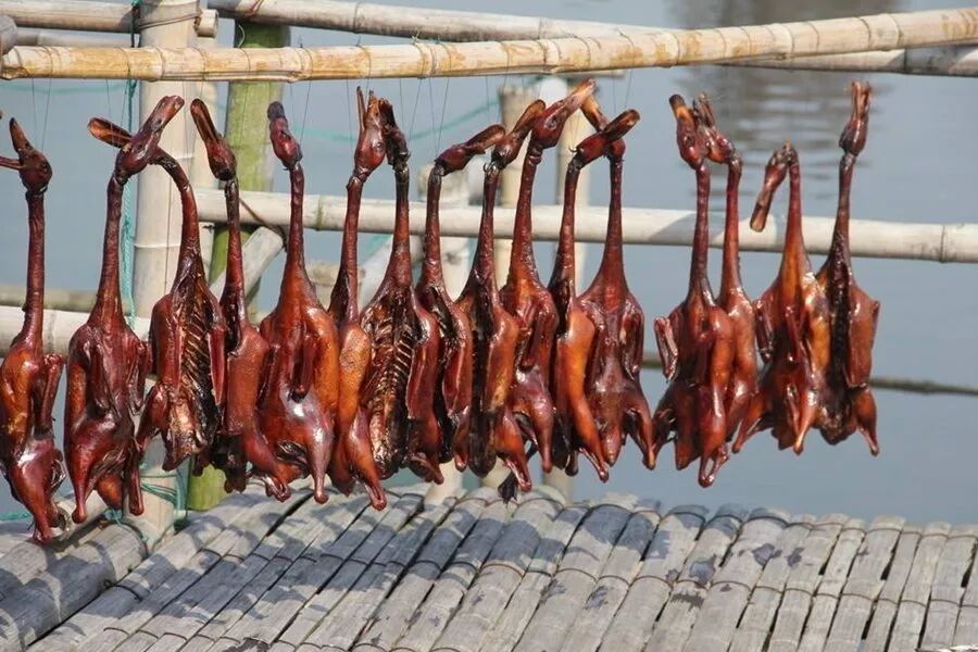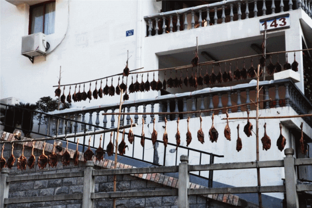 晒酱鸭需要阳光,最好是连续的晴日,不然会影响酱鸭的贮藏;如果赶上连绵阴雨,就不妙了。除了太阳,最好还有干爽的北风,这样酱鸭的口感才会好。