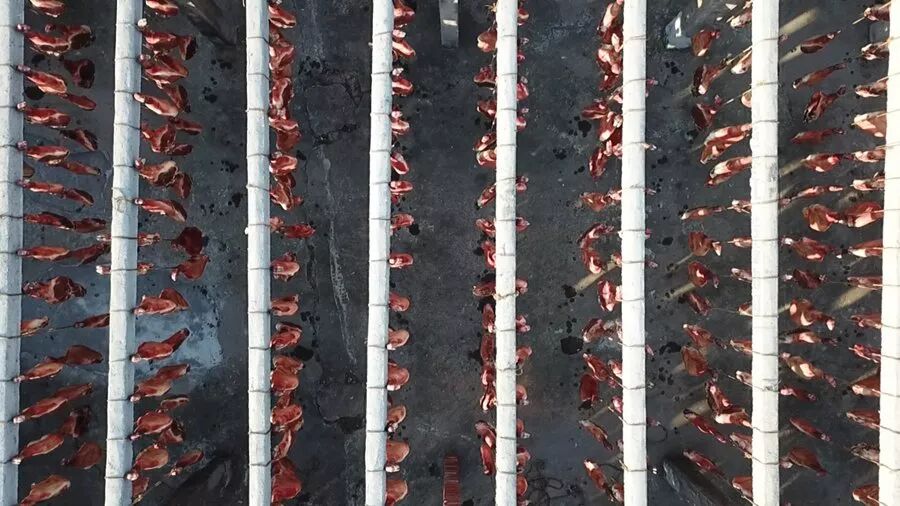 ▲ 航拍酱鸭晾晒全景