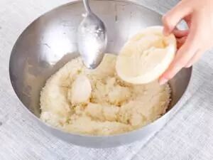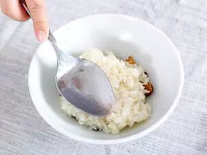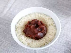 6.填入约与米饭等量的红豆沙。也可减少大米饭的4/5