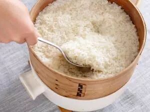 1.糯米洗净泡4小时后上蒸笼,水开后大火蒸30分钟。约20分钟左右,可以开盖再淋一些水在糯米饭上。以保证最表面的米饭也湿润软糯。