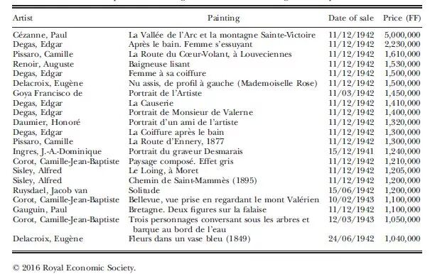 表2.占领期间艺术拍卖行表,数据源:Oosterlinck (2017)页2694
