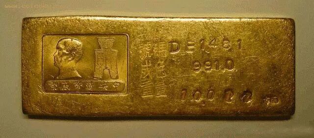 有件轶闻可供助谈:1949年后,许多人带着各种资产逃往美国、香港、台湾。最常见的是金条:中央造币厂铸造的十两金条(312.5克)称为大黄鱼,民间金店铸造每根一两(31.25克)是小黄鱼。