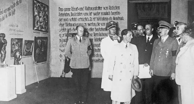 纳粹的审美观,1930年代初期就逐渐形成。第三帝国的宣传部长戈培尔(Joseph Goebbels,1897-1945,1933-45在任),要求画家Adolf Ziegler(1892-1959,希特勒偏好的艺术家),举办一场艺展。主题是1910年以来德国的颓废艺术,展示品来自帝国内的搜藏。树立这个标准后,开始清理不符纳粹审美观的作品,半年内没收了101个博物馆内1.7万件作品。这项颓废艺展观众超过两百万,非常成功。